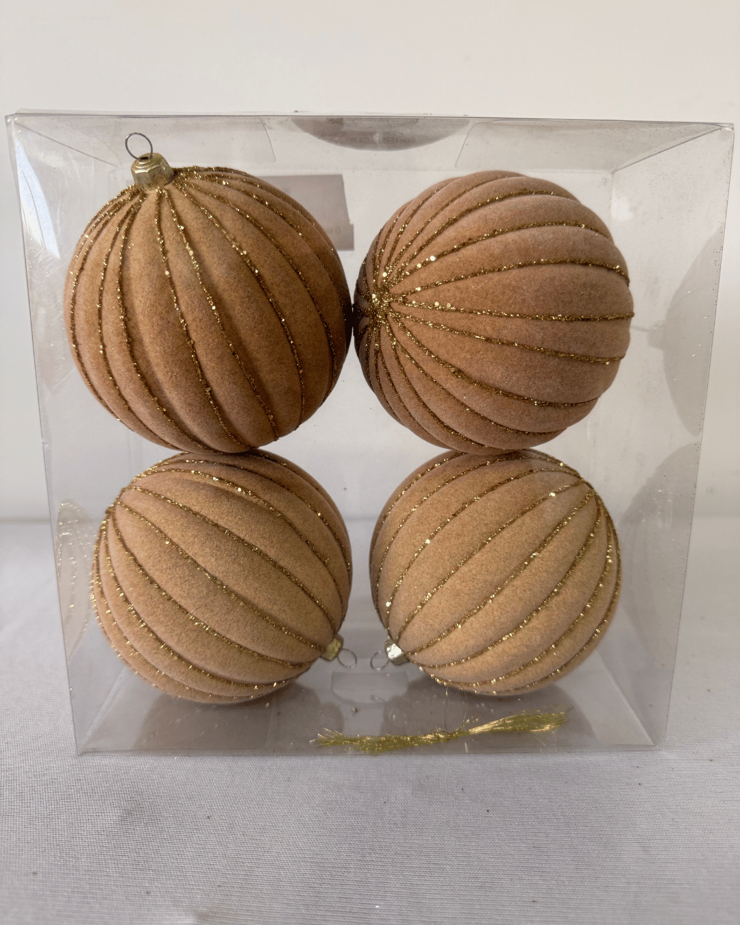 BOLA TRABALHADS CREME COM GLITTER 10CM JOGO C/4 UND