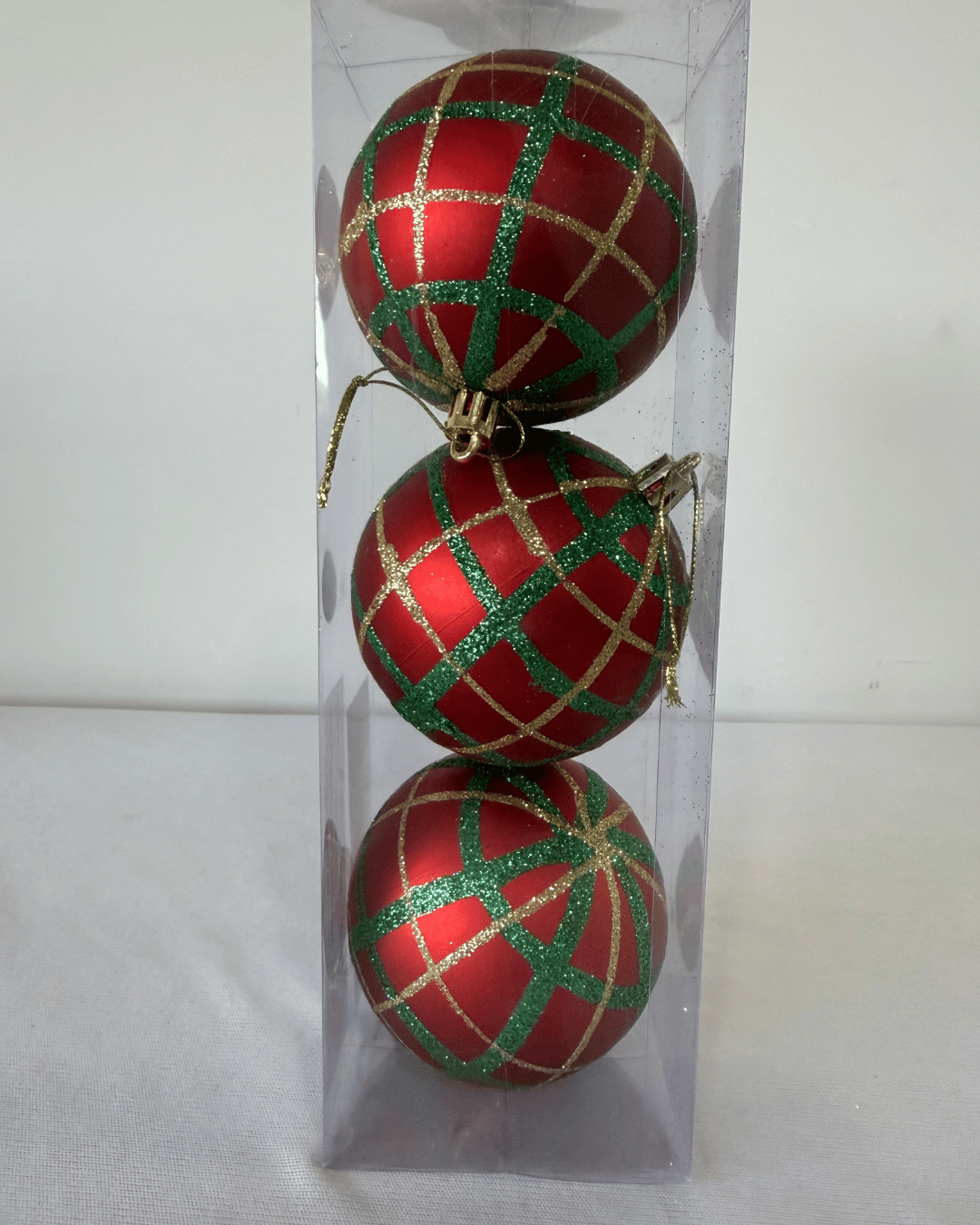 BOLA DECORADA NATAL VERMELHO/VERDE C/3 UND 8CM