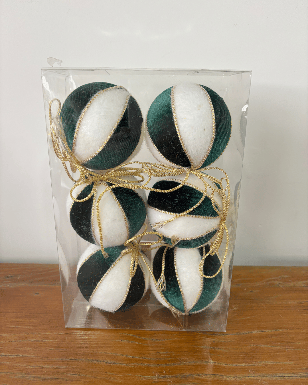 BOLA VELUDO BRANCO/VERDE 8CM JOGO C/6 UND