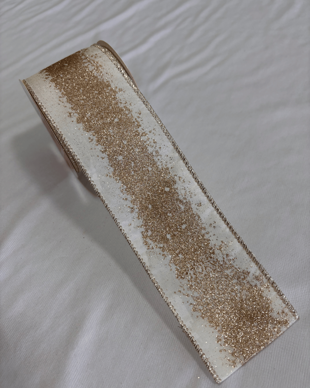 FITA ARAMADA C/GLITTER MARFIM/OURO 6,3CM X 9,14M