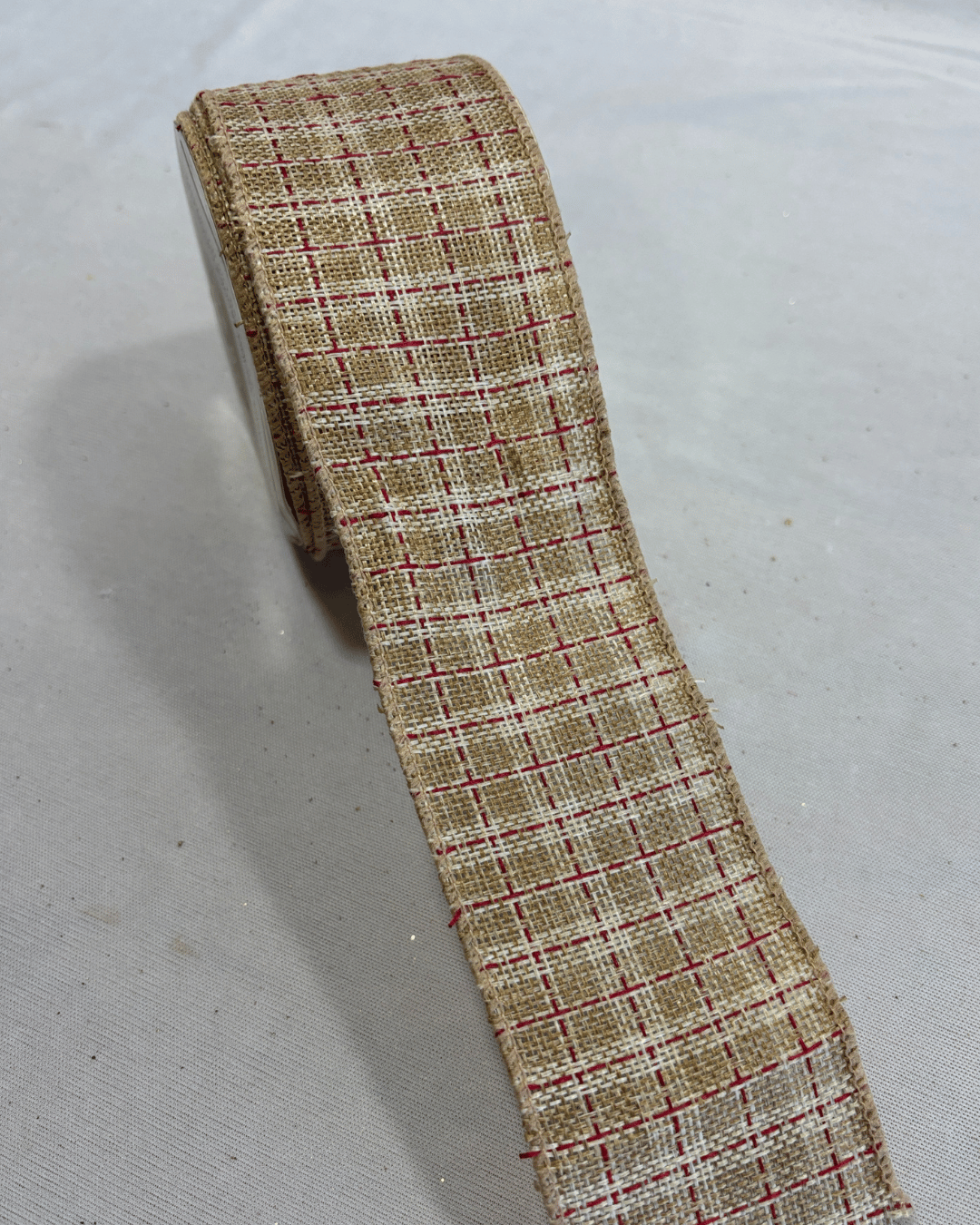 FITA ARAMADA TECIDO XADREZ C/COSTURA (BEGE VERMELHO) 6,3cmX9,14m (FLORARTE) Vol. 1