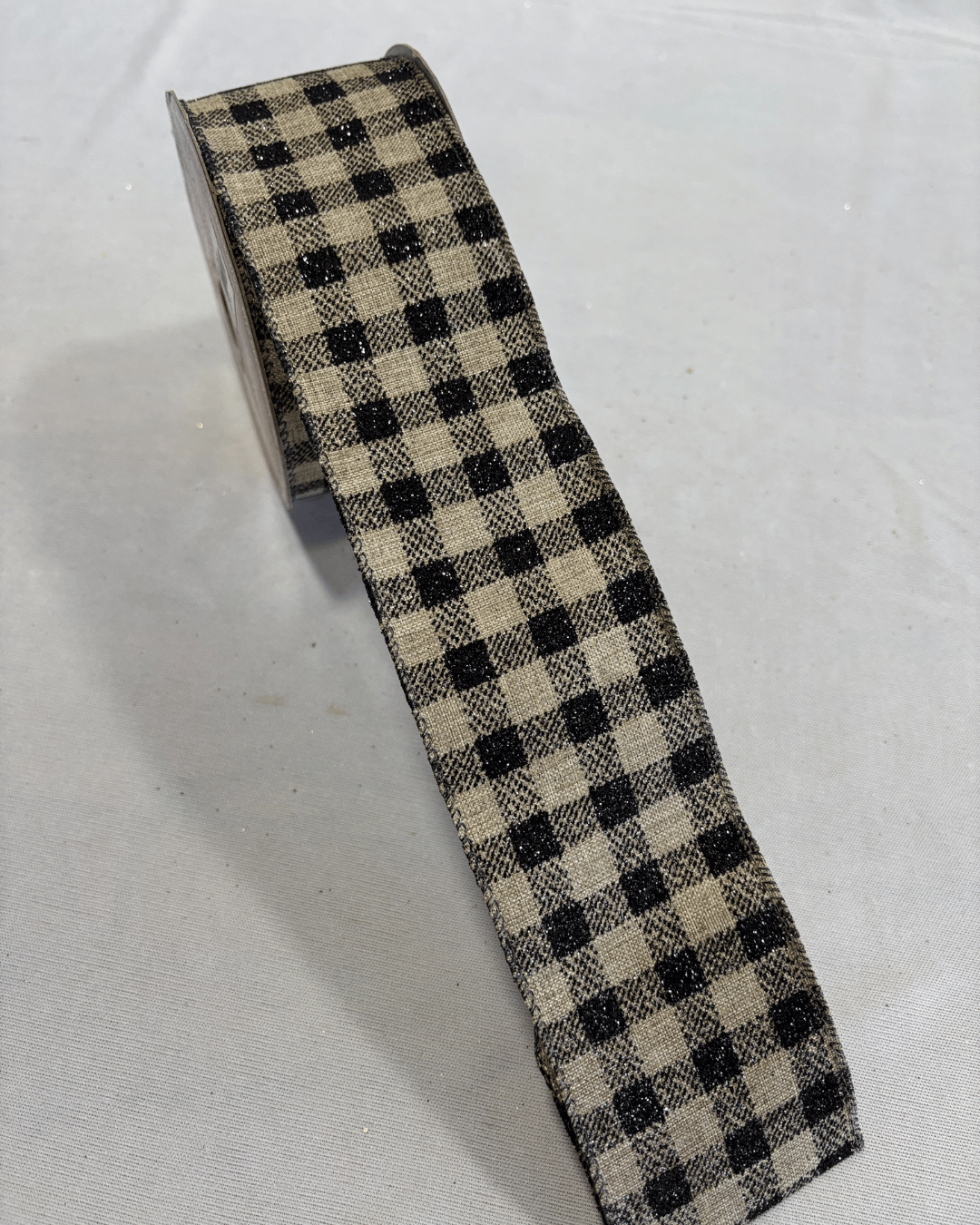 Fita Aramada Xadrez Cru e Preto, usada para decoraçoes natalinas