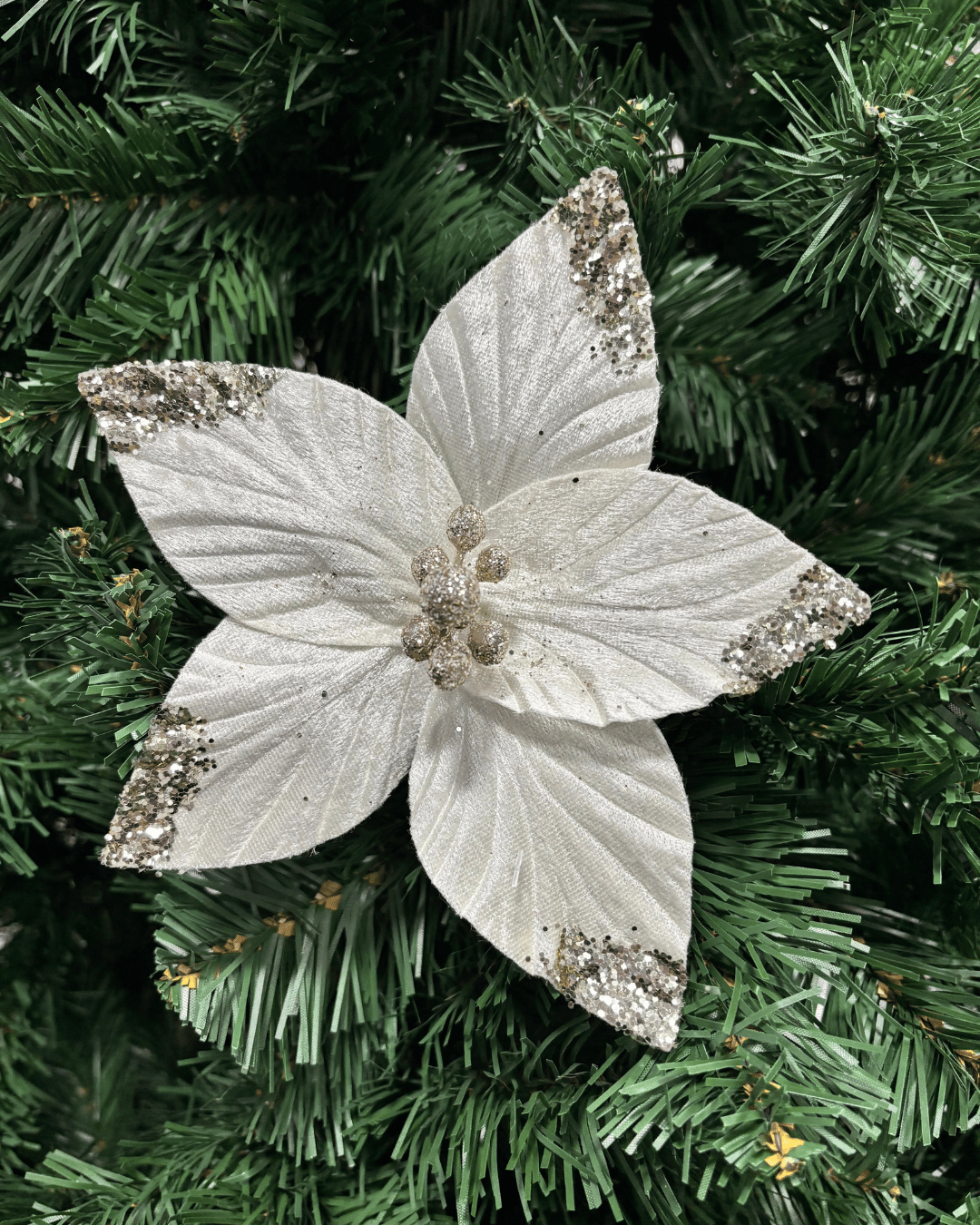 FLOR DECORATIVA NATAL BRANCO/CHAMPANHE 18CM