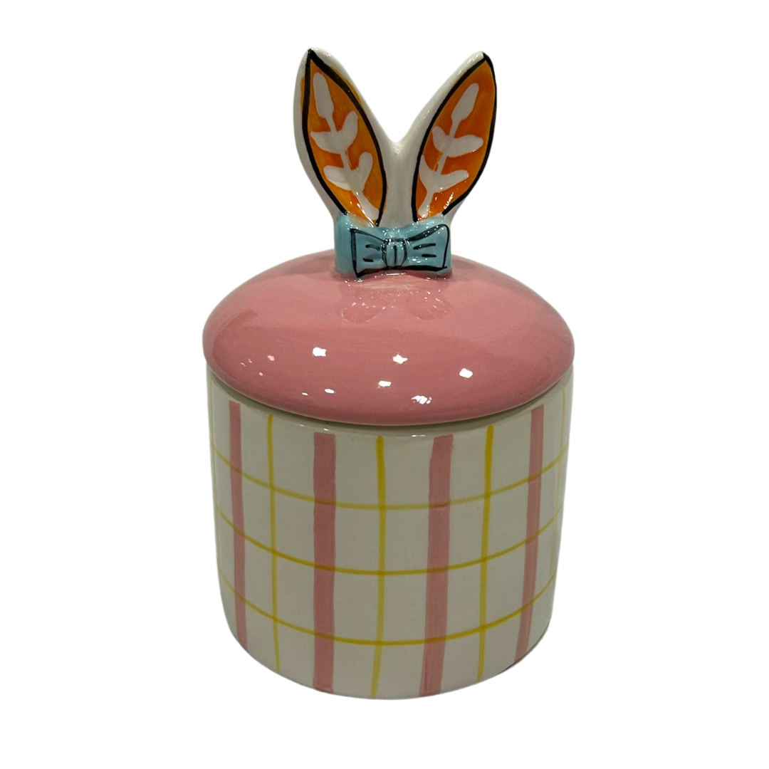 POTE PASCOA DECORATIVO C/TAMPA (ROSA BRANCO) 13,9X9cm