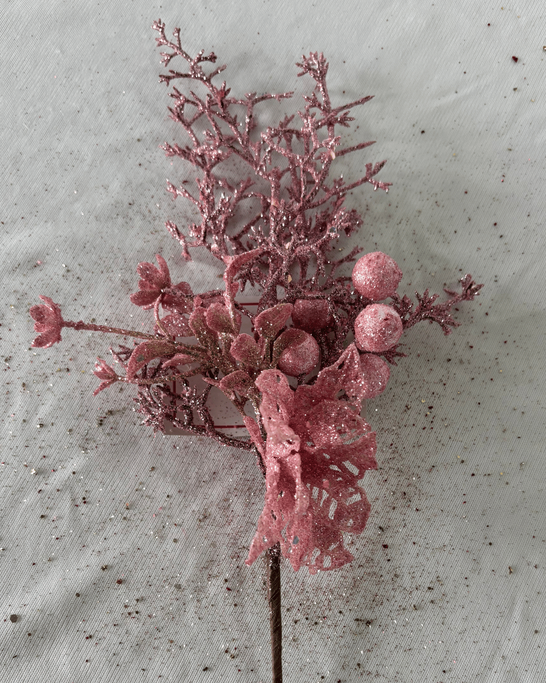 GALHO PICK FLORES FRUTAS C/GLITTER ROSA 30CM