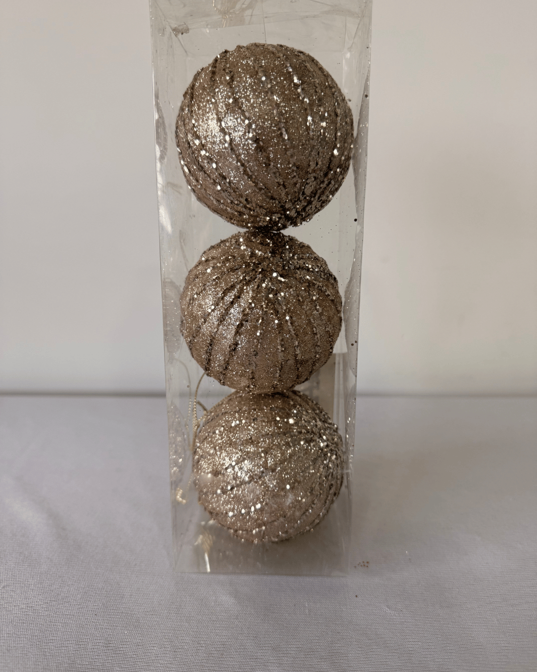 BOLA NATAL 8CM CHAMPANHE JOGO COM 3 UND